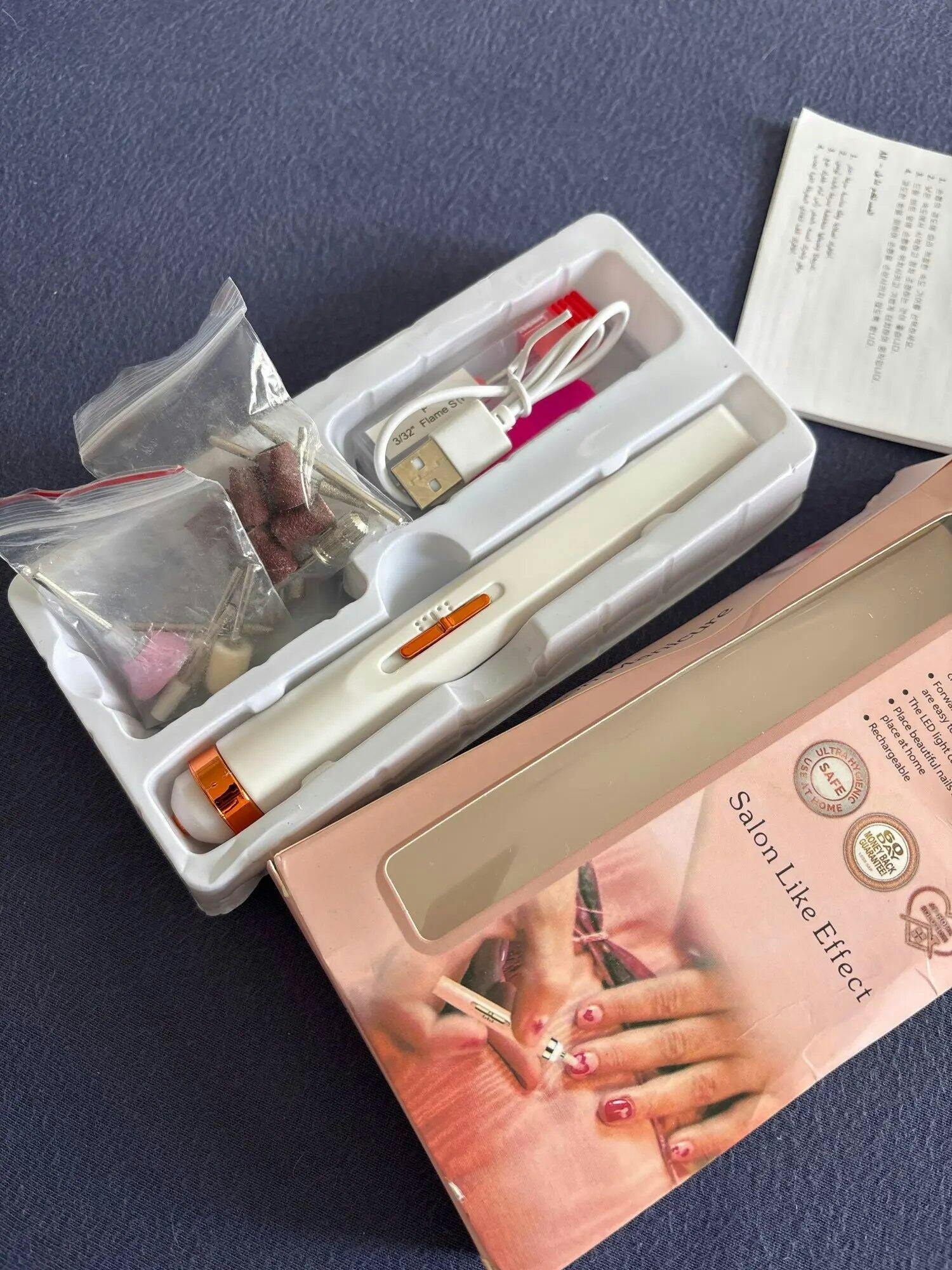 PopNails™ ist ein elektrischer 5-in-1 Nagelfräser, der mit rotierenden Aufsätzen arbeitet. Er entfernt sanft Nagellack, Gel- oder Acrylreste, glättet die Oberfläche und formt deine Nägel – ganz ohne Druck oder Verletzungsgefahr.
